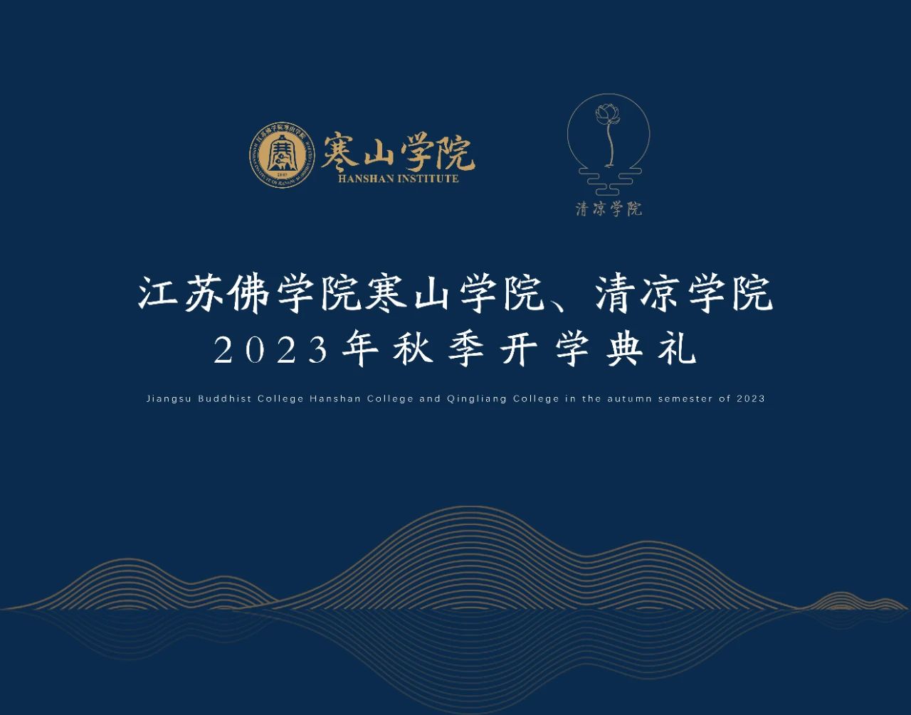 2023年10月15日9时30分,江苏佛学院寒山学院、清凉学院2023年秋季开学典礼在重元寺法堂举行。