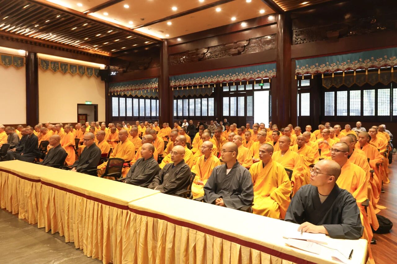 大和尚首先带领大家学习习近平总书记在中共中央政治局第二十二次集体学习时的重要讲话精神。随后分享其学习心得,勉励全院师生要一如既往发扬爱国爱教优良传统,坚持佛教中国化方向;要一如既往严持净戒,维护清净道风;能知善学的学风要继续加强。最后,和尚深切期望大家要顺应时代潮流,把握当下胜缘,将个人修行融入国家发展,以行动报国土恩,把“庄严国土、利乐有情”的愿力,转化为服务社会、助力民生的实际行动。