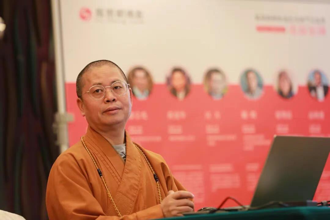 2019年11月,净因法师在凤凰网佛教通讯员澳门交流营上做内容分享
